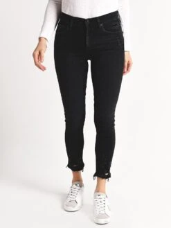 FEATURES:98% Cotton, 2% SpandexHi Rise Skinny Crop | Front Rise: 9Â Fit true sizeModel is wearing size 26 jean.