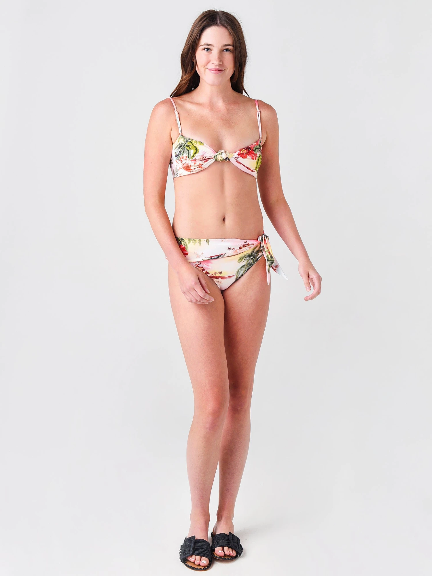 FEATURES:Bikini TopFront Twist Knot DetailUnpaddedAdjustable and Removable Shoulder StrapsBoned SidesBack Tie ClosureUnderwireAll-Over Tropical Print80% Polyester, 20% ElastaneModel is wearing size Small bikini top.Model’s Measurements: Height: 5’11” | Bust: 32A | Waist: 26.5″ | Hips: 36″ | Dress Size: 2-4 (US)