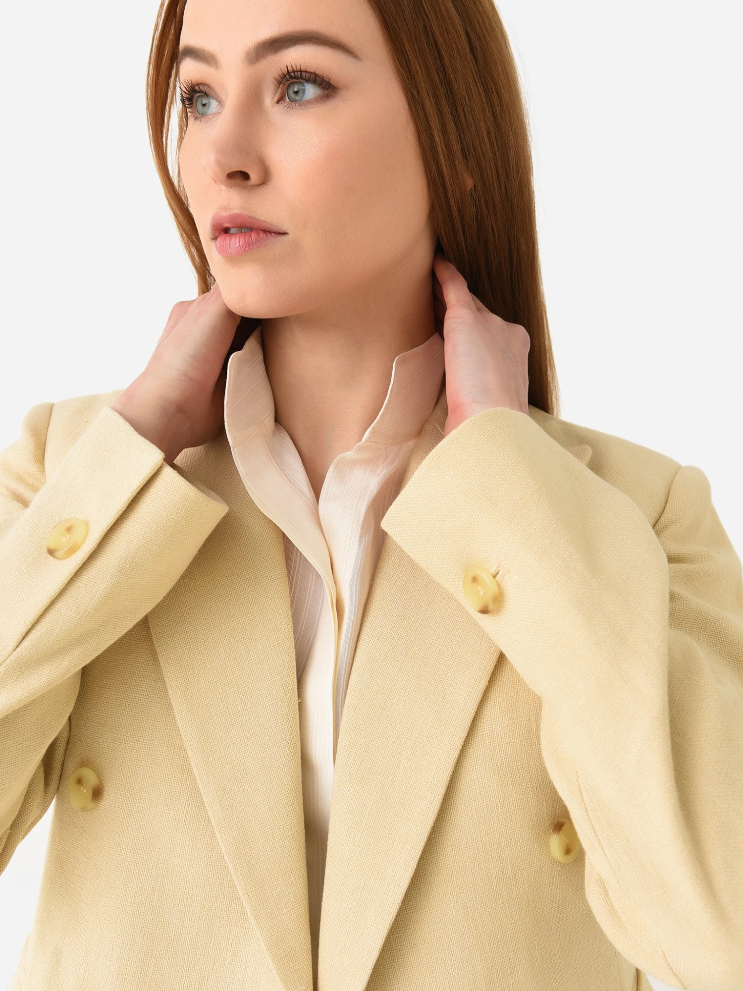 Slightly cropped double-breasted jacket made from a structured linen cotton canvas blend.