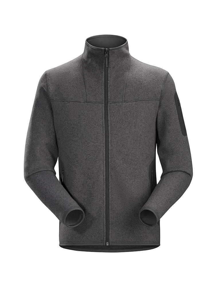 The Covert Cardigan s modern sweater styling, clean lines and relaxed fit blur the distinction between alpine inspired performance and everyday living needs. Arc teryx specifically developed Alpenex heathered fleece to create a technical jacket with the elegant look of wool. The polyester fabric has a brushed back knit that is engineered to provide versatile warmth and comfort.