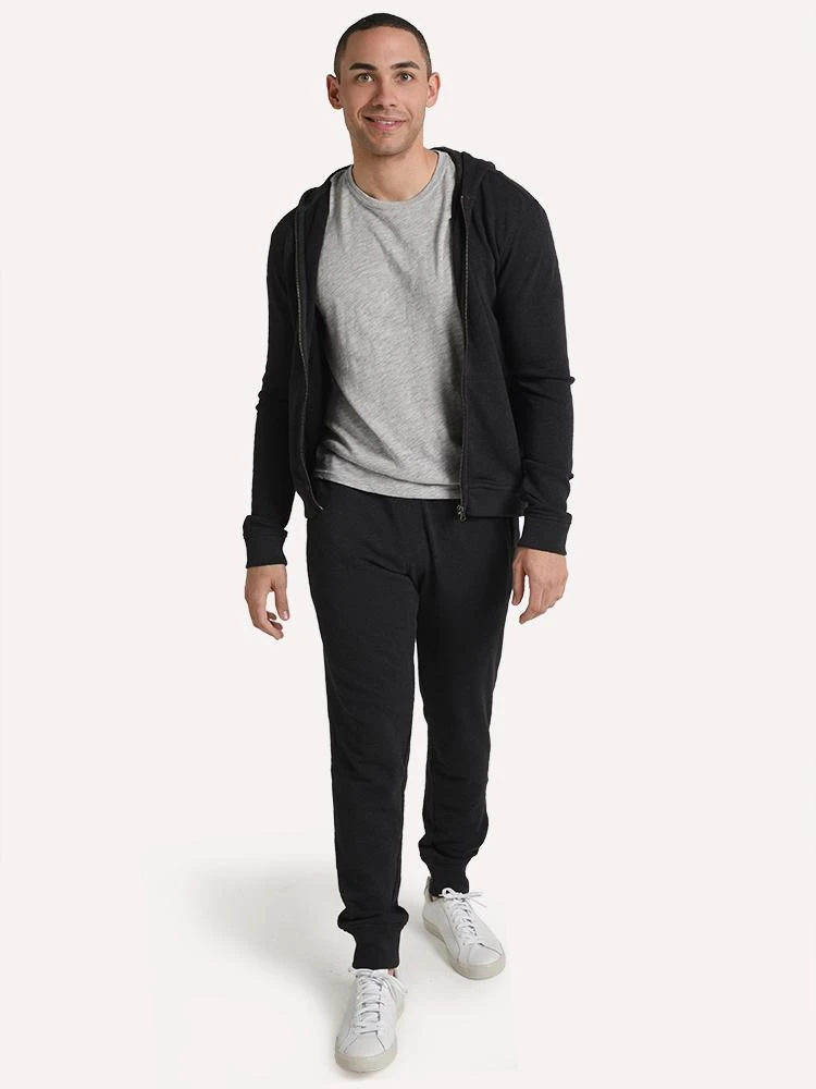FEATURES:Full-Zip HoodieSleek Elastic Ribbing at Cuffs and WaistbandSide PocketsJersey Lined HoodSoft French Terry Fabric100% CottonStyled with ATM tee Style # AM4000-FK1, ATM pants Style # AM5010-FQ and VEJA sneakers Style # EA2001M. Model is wearing size Medium hoodie, Medium tee and Medium pant.