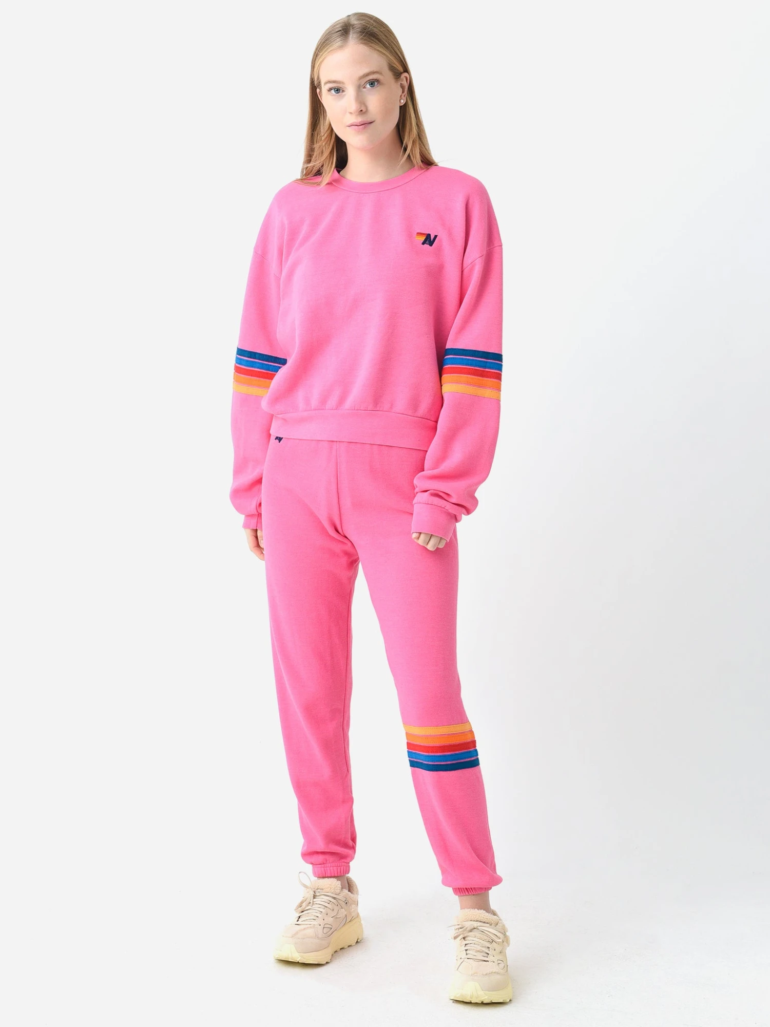 FEATURES:SweatshirtCrew NecklineLong Sleeve with Stitched StripesTri-Blend FabricationBanded Cuffs and HemStraight Hem50% Cotton, 37% Polyester, 13% RayonRelaxed FitModel is wearing size Small sweatshirt.Model’s Measurements: Height: 5’9.5″ | Bust: 32C | Waist: 26″ | Hips: 35.5″ | Dress Size: 2 (US)
