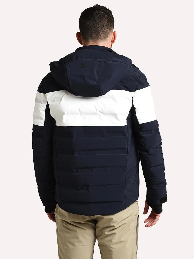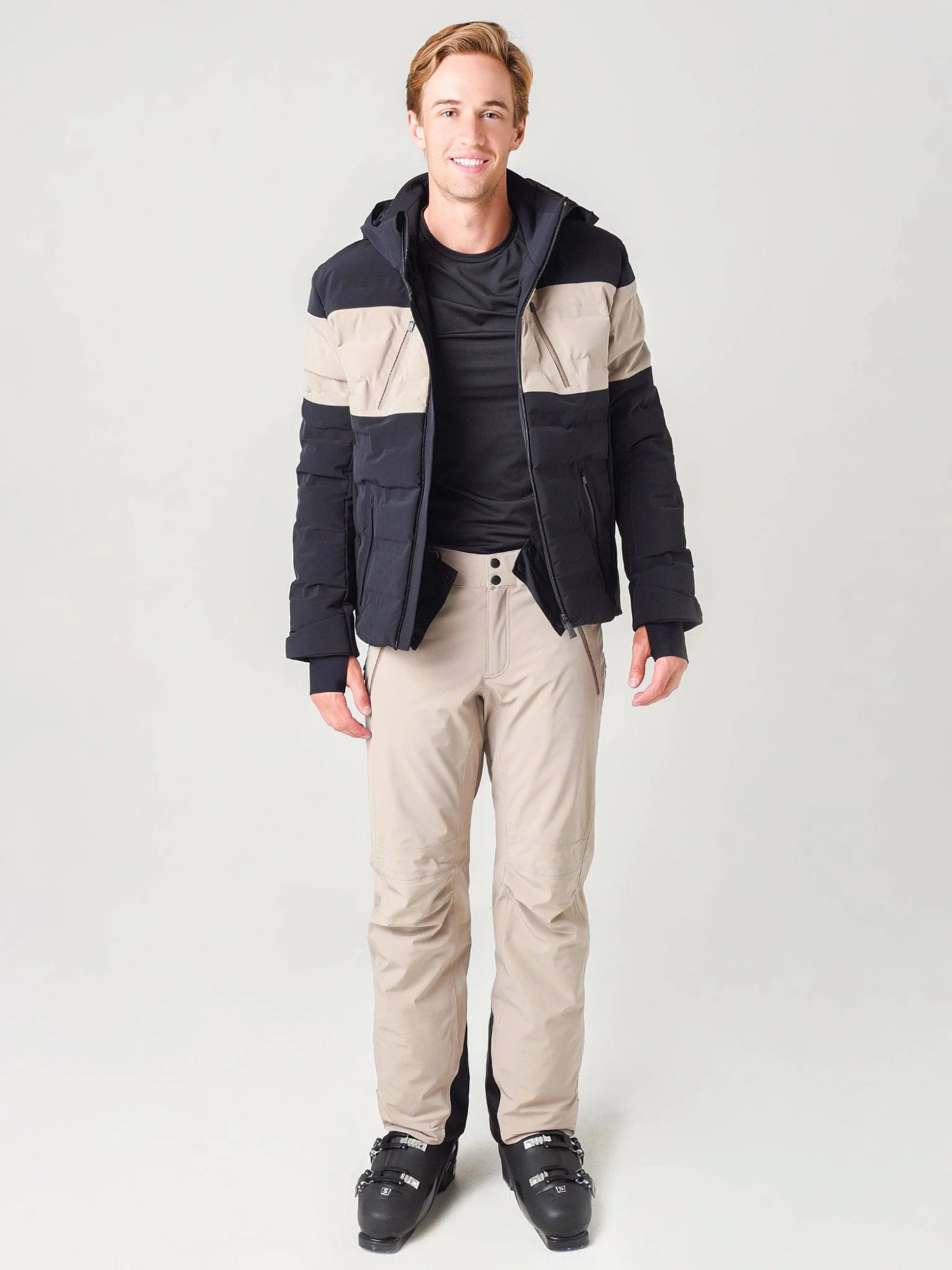 FEATURES:Ski JacketStand-Up Collar with Chin-GuardAdjustable HoodVentilation PanelsWaterproof 20,000mmGoggle ClothTechnology PocketShell: 90% Polyamide, 10% Elastane; Lining: 53% Polyamide, 44% Polyester, 3% Elastane; Filling: 100% DownModel is wearing siz emedium jacket.Model’s Measurements: Height: 6’2″; Waist: 32″; Inseam:33″; Collar: 15″; Sleeve: 35″
