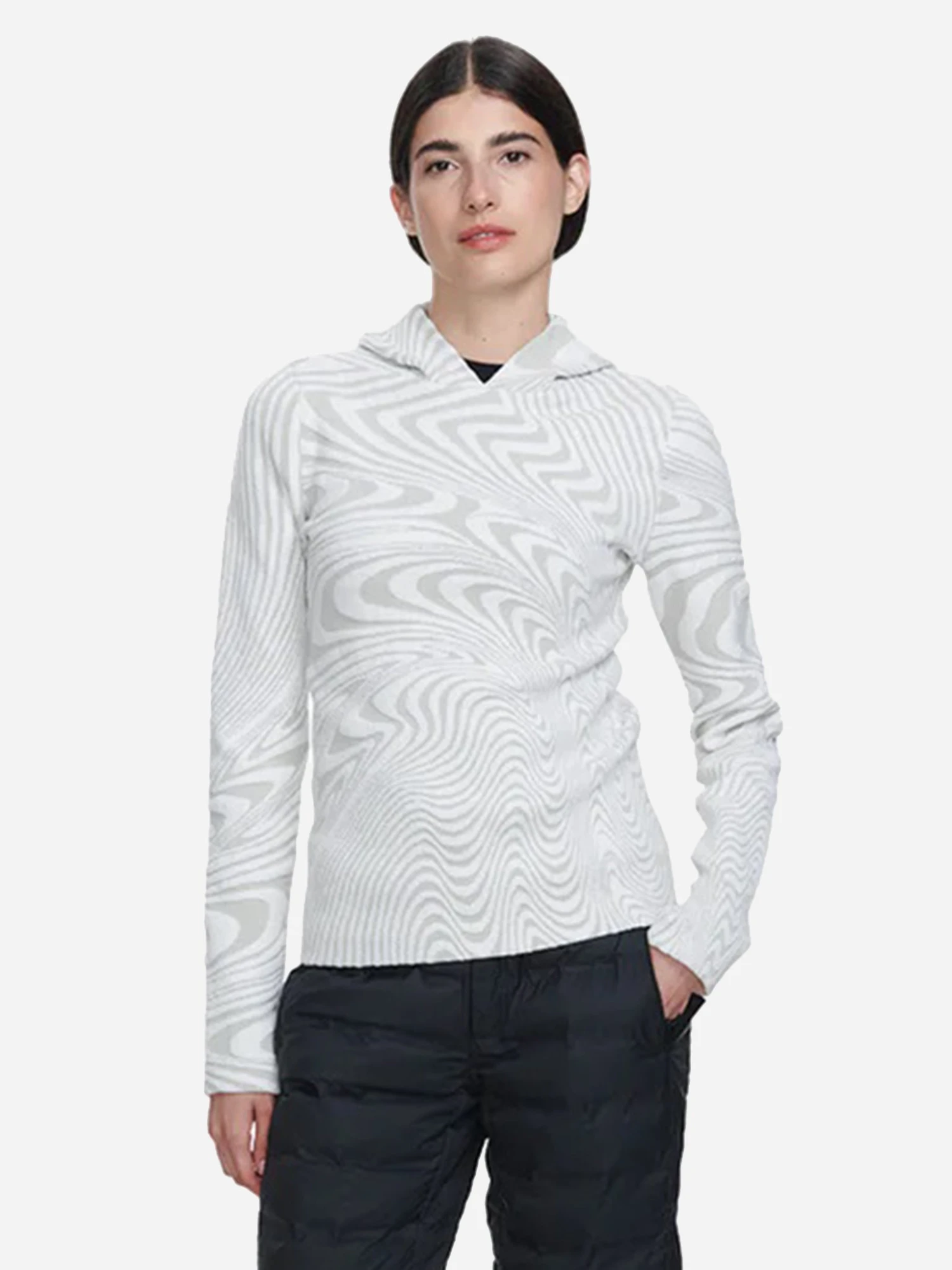 FEATURES:HoodieHigh NecklineLong SleeveStraight HemJacquard Knit FabricationMerino, Viscose, Lycra BlendClassic Fit