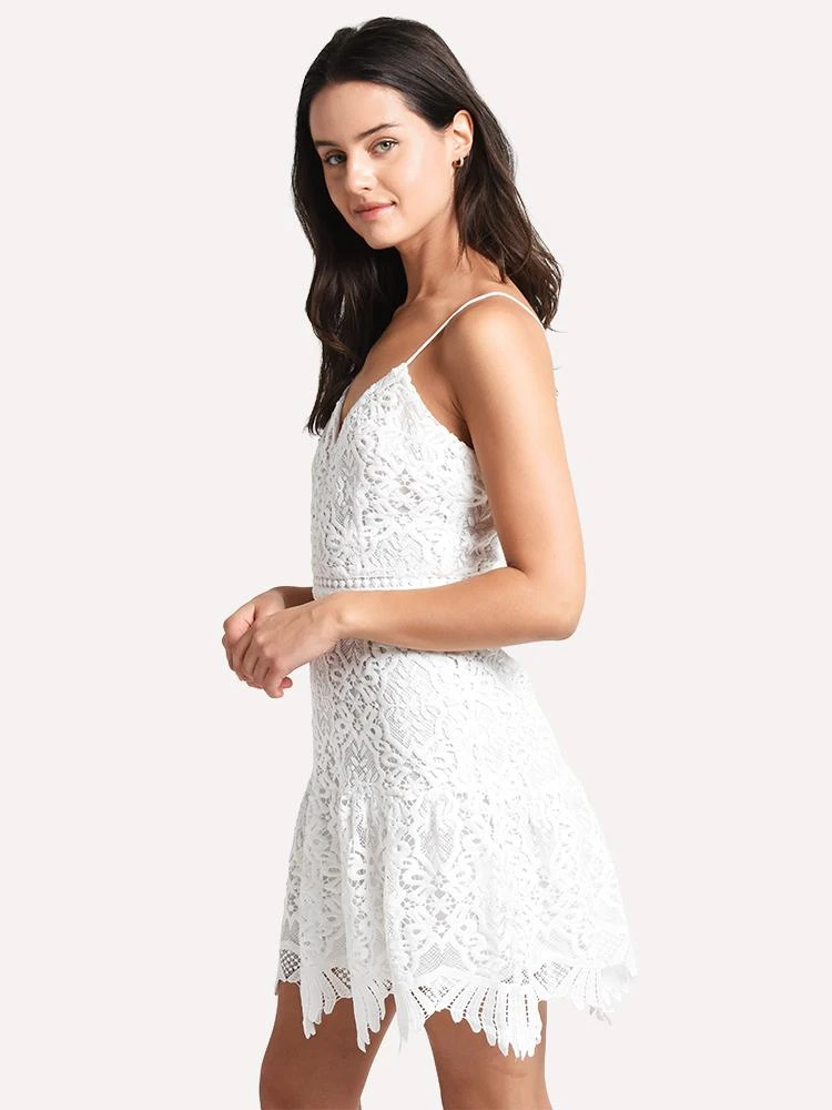 FEATURES:V NeckSpaghetti strap Ruffle hemlineImported