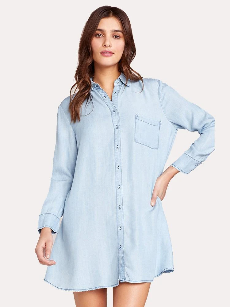The Shirty Personality is a soft indigo tencel shirt dress with an A-line silhouette.
