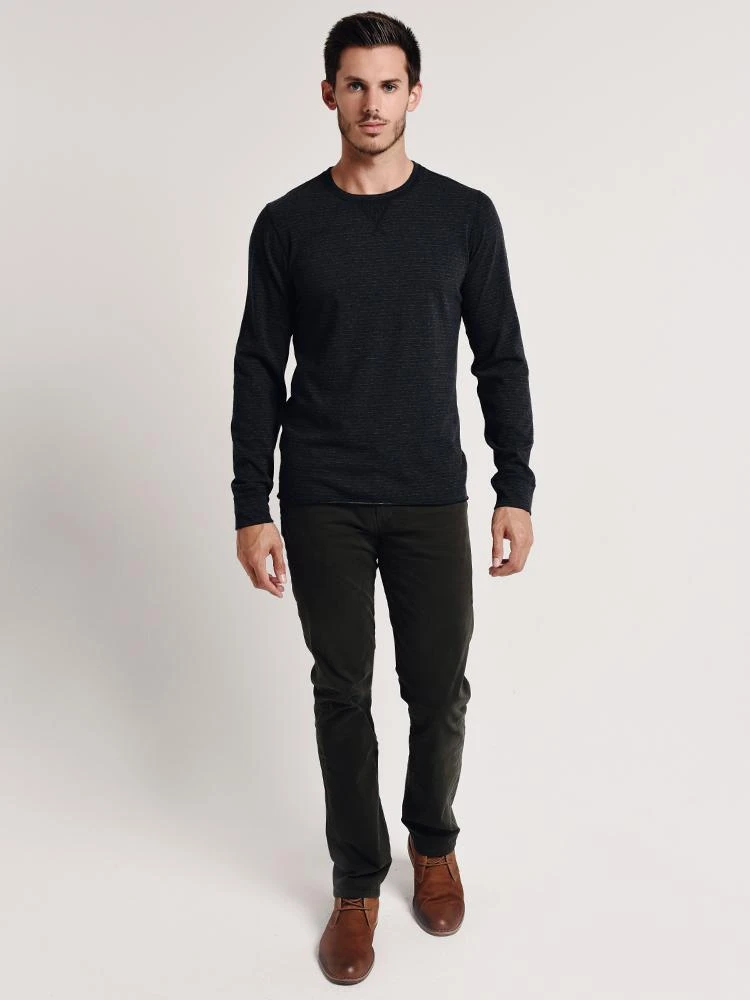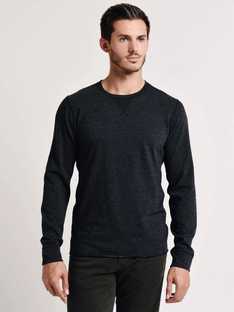 The Billy Reid Henry Crew features a slightly faded stripe pattern.