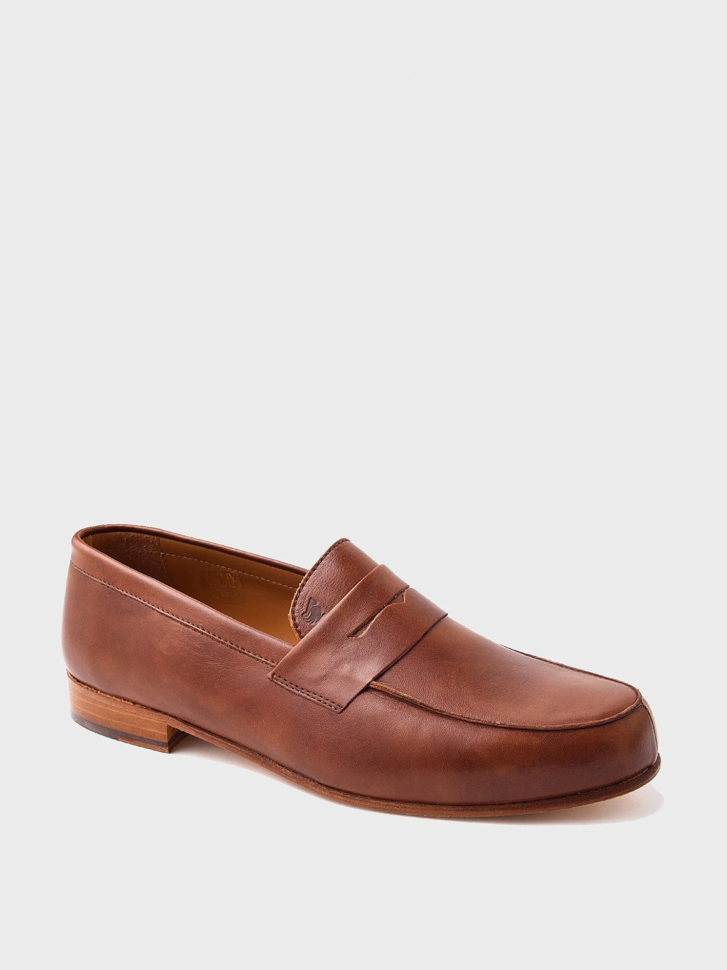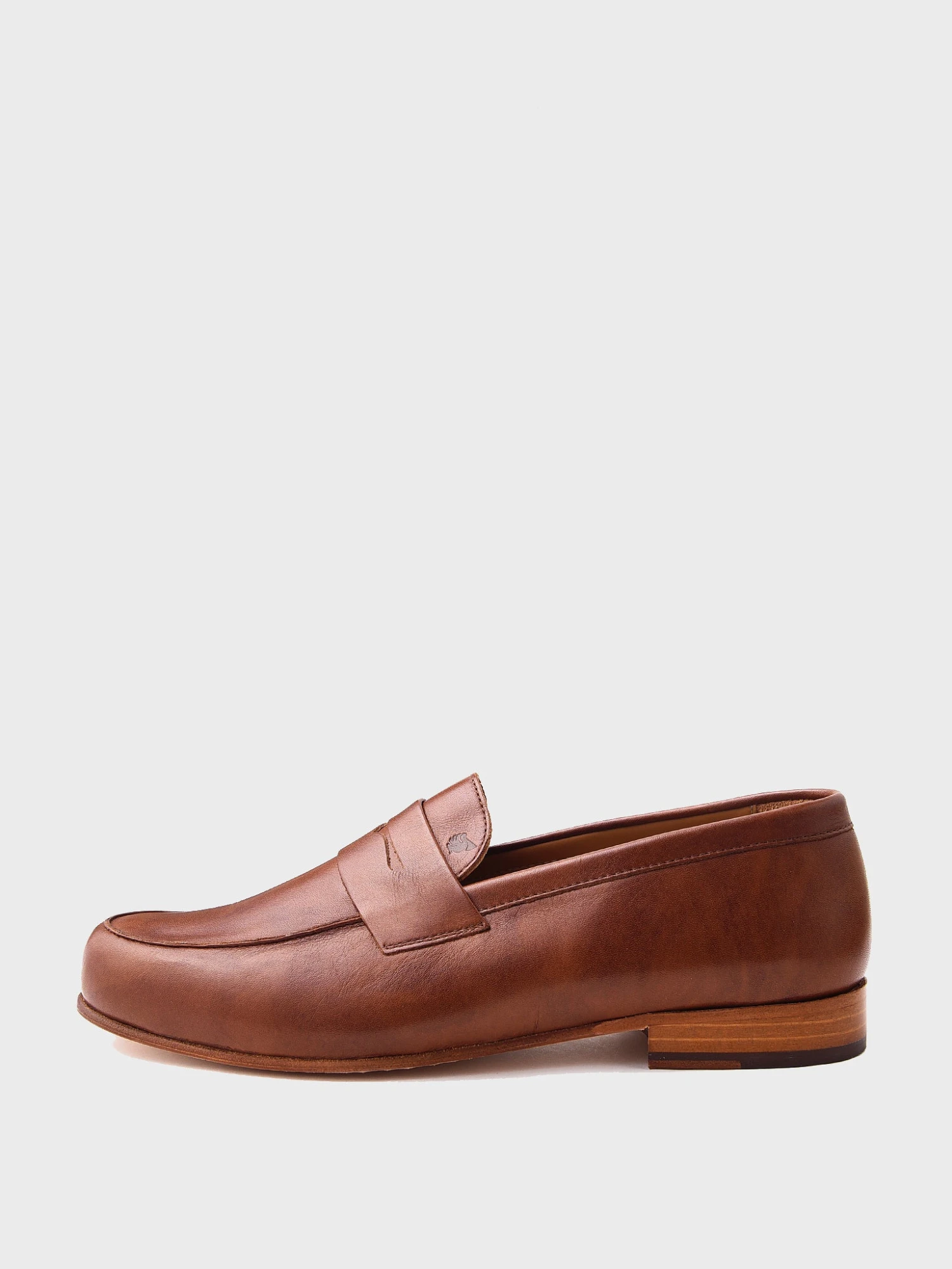 FEATURES:LoaferAlmond ToeBand Over VampSlip-OnHandmadeUppers: Italian LeatherLining: LeatherOutsole: Blake Stitched LeatherStacked HeelMade in ProtugalTravel Pouch Included