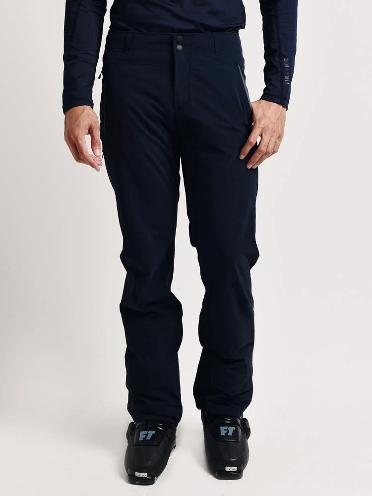 FEATURES:Regular FitCasual cut with slight flareFinished with zippered at the ankle and edge protectorInterior snow guard with rubberized finishFastening with hooks and double press buttonsInvisible zipperAttached waistband with six belt loops for a belt width of up to max. 4.5 cmPadded inlay at the backTwo taped zippered pockets each side, front and backAir vents at the thighs for ventilationFIRE+ICE logo patch on the back of the waistbandWater Column: 20.000 mmBreathability: 10.000Wind- and waterproof Dermizax fabricSoft cozy padding