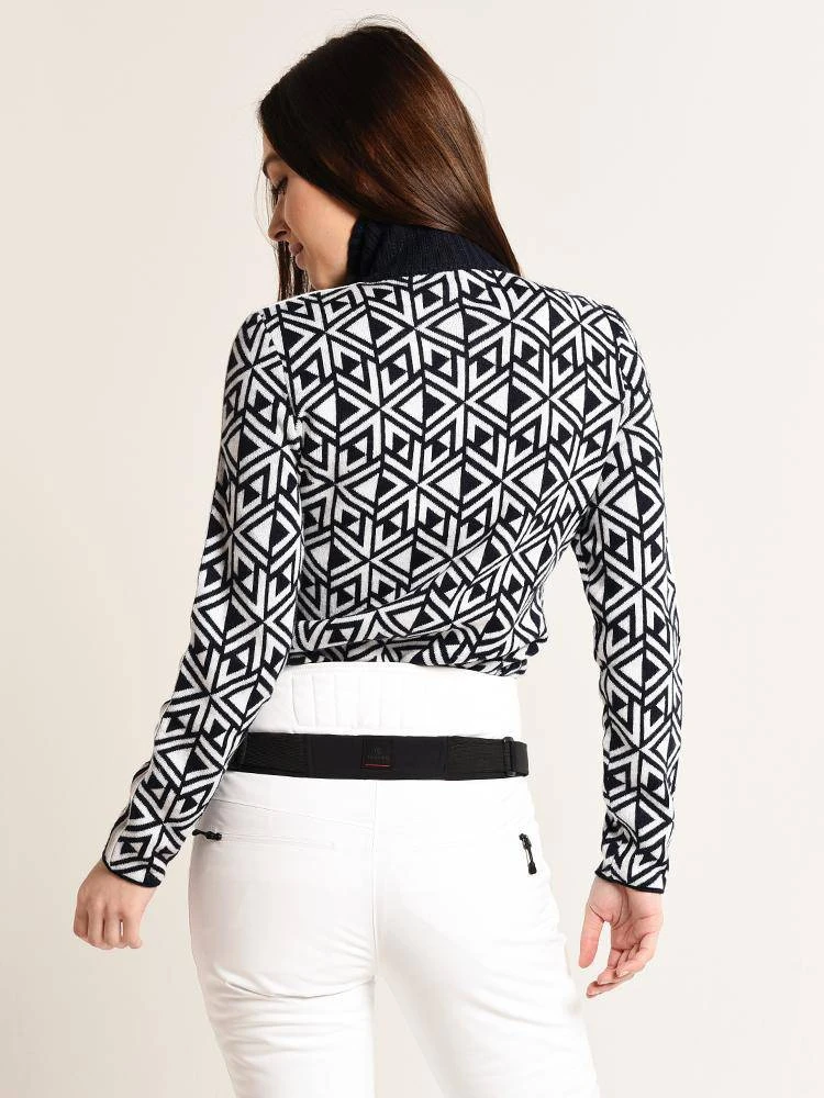 FEATURES:68% wool, 29% polyacrylic, 3% polyamide.2 way zipperJacquard print design with stripe accents down the sleeves.Long sleeves that taper towards the cuff.Styled with Bogner Pant Style # 1172-4716. Model is wearing size small Baselayer.