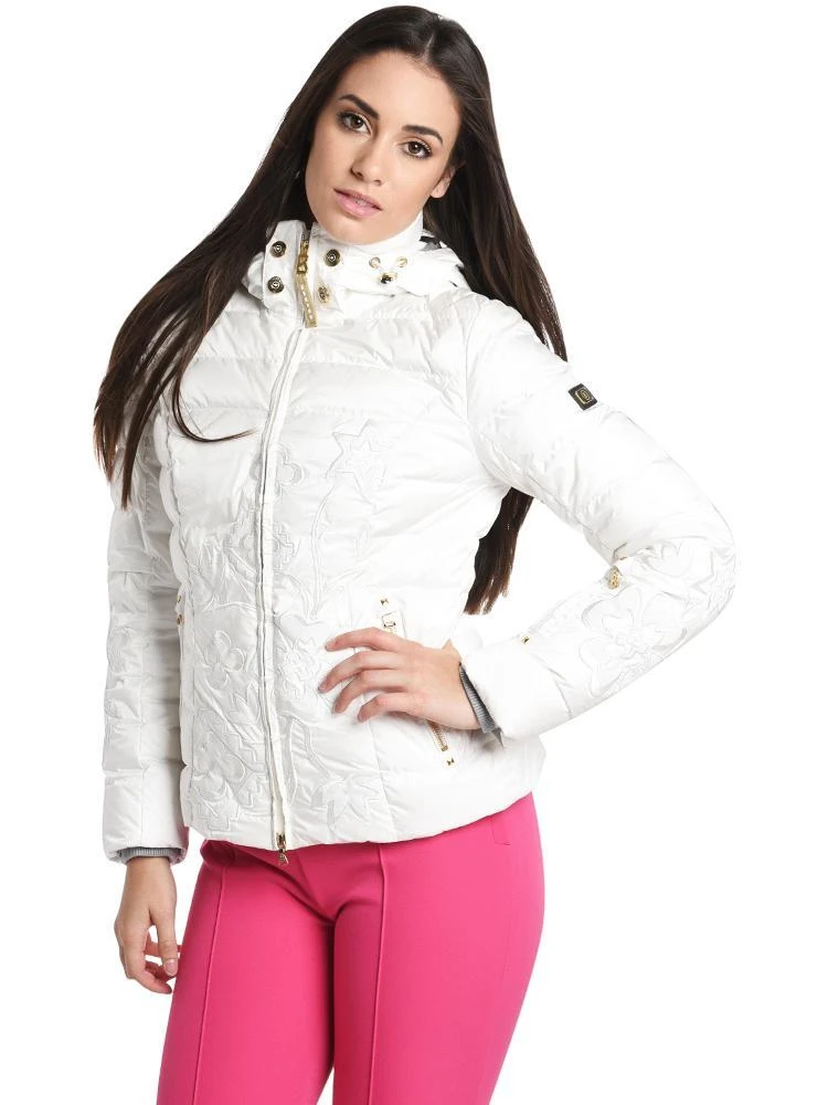 The Bogner Cyra-D Ski Jacket features a tonal floral embroidery design.