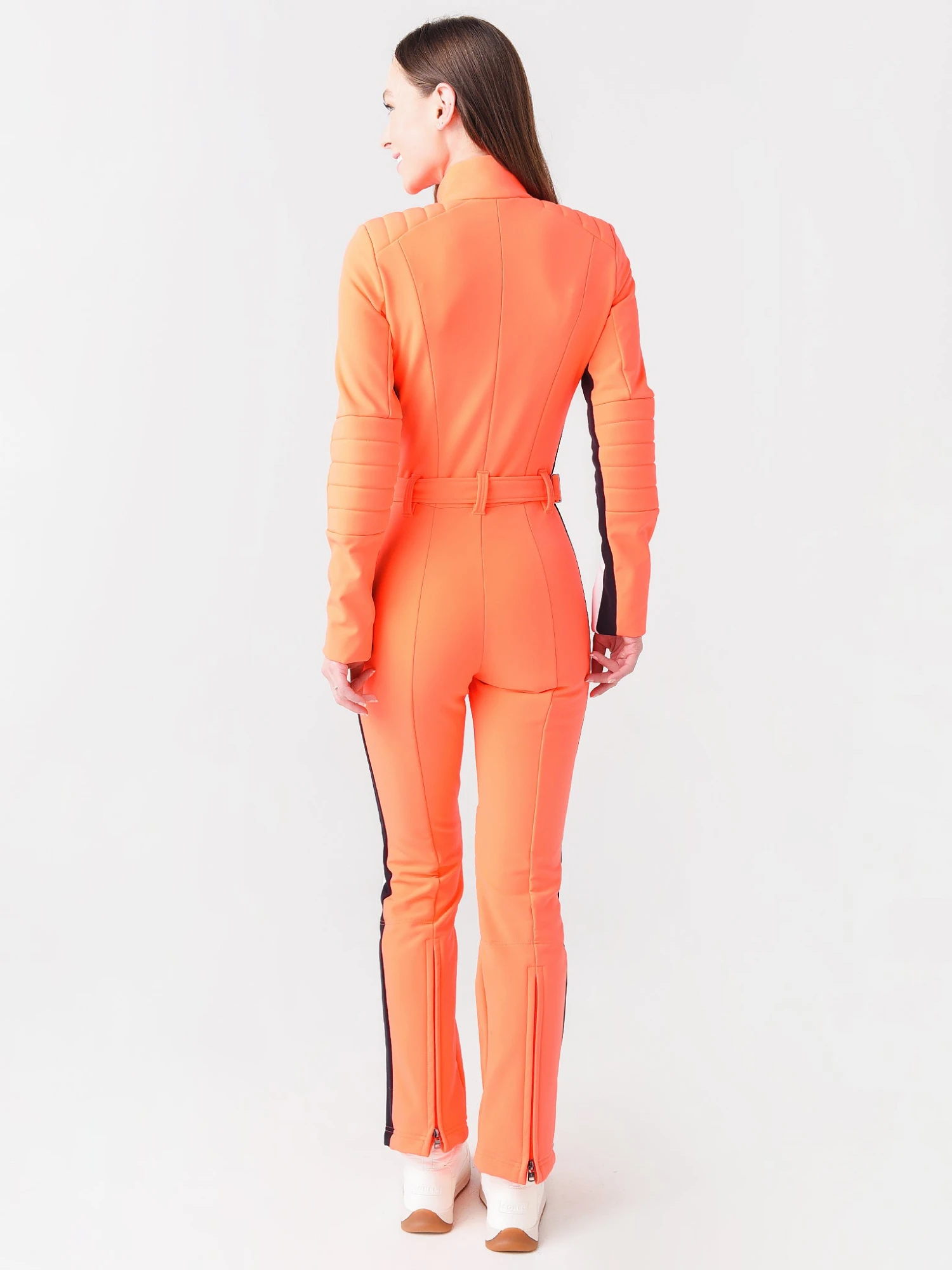 FEATURES:Ski SuitHigh Stand CollarReinforced Sections on Shoulders, Elbows and KneesContrast Side StripesSki Pass In-Seam Pocket w/ Left Sleeve Zip, Two Side In-Seam Zip PocketsWaistband w/ 5 Belt Loops for Belts up to 1.9in, Textile Belt w/ Metallic Logo Clamp BucklePiped Zipper w/ ‘B’ Logo Pendant for FasteningAnkles w/ Zipper and Inner Snow GuardShaping SeamsWater-Repellent Finish, Windproof Softshell MaterialInsulating Triple-Layered ConstructionShell: 89% Polyamide, 11% Elastane | Second Layer: 100% Polyurethane | Third Layer: 92% Polyester, 8% ElastaneSlim Fit, Straight LegModel is wearing size Small ski suit.Model’s Measurements: Height: 5’10.5″ | Bust: 32C | Waist: 25″ | Hips: 36″ | Dress Size: 4 (US)