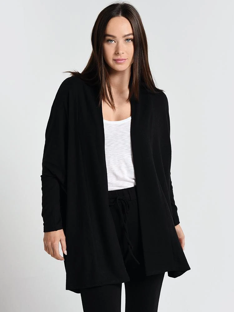 FEATURES:Open silhouetteDolman sleevesCardigan styleTunic lengthShawl collarLong sleevesShell: 62% polyester/33% rayon/5% elastaneHand washImportedStyled with J brand Jeans Style # JB000917. Model is wearing size small sweater and 26m jean.
