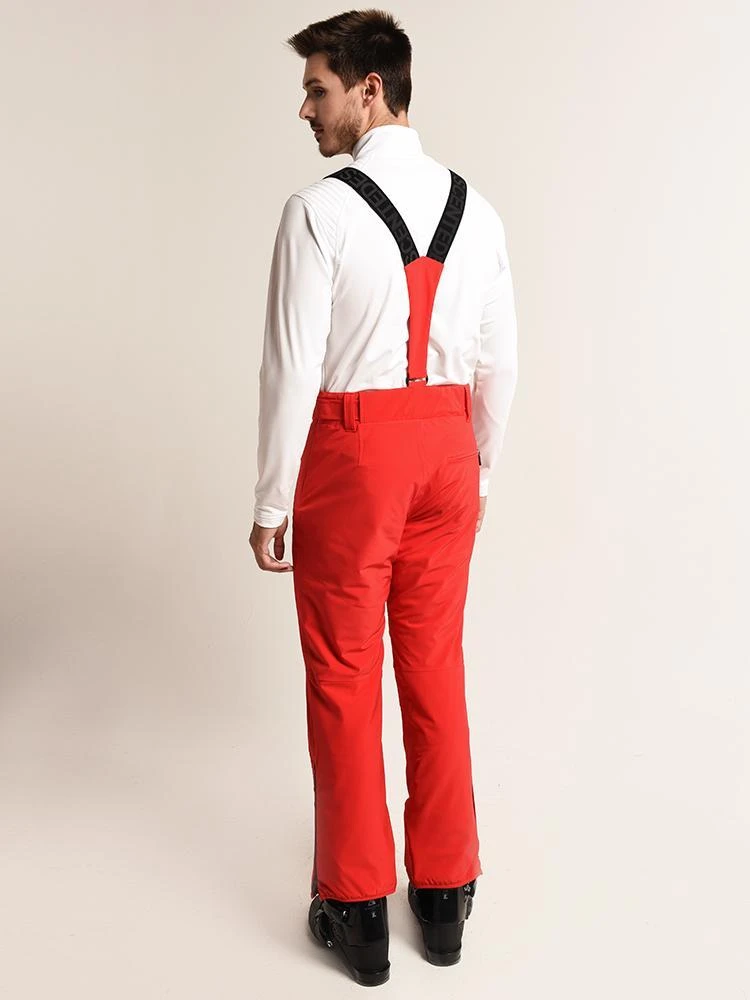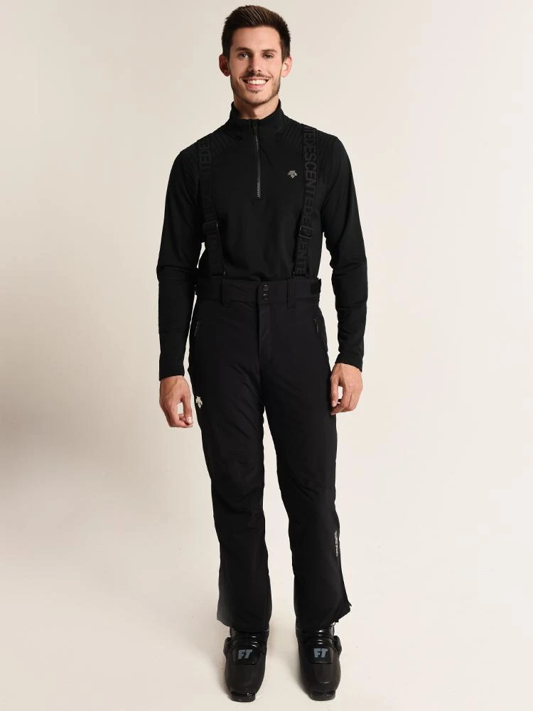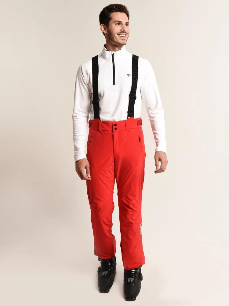 FEATURES:Removable suspendersAdjustable waist Two zippered front pockets, one zippered back pocket Lycra lining insertsBottom leg zippersDurable edge guard Fully seam sealed4-way stretch D-Laser cut Motion 3D fit Dermizax 20K membrane3M THINSULATE STRETCH 100G65% polyethylene, 35% polyester insulation 100% polyester lining 89% nylon, 11% spandex outer fabric Styled with Descente baselayer Style # MGB01M. Model is wearing size medium pant and baselayer.