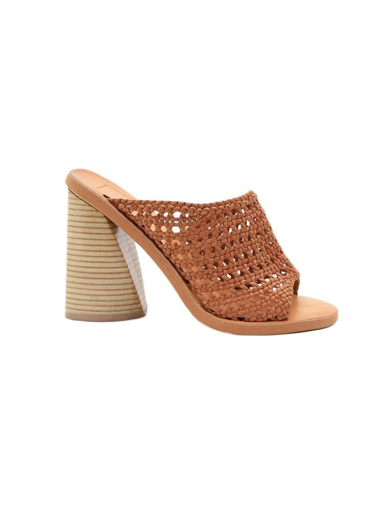 FEATURES:Open-weave leather upper.Slip-on.Open toe.Man-made lining.Lightly padded footbed.Flare wooden block heel.Synthetic sole.Imported.