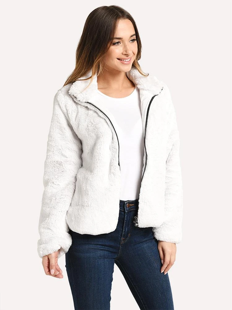 FEATURES:Faux Fur jacketFull-Zip ClosurePlush Stand-Up CollarSilky High-Pile FleeceShell: 100% Polyester; Lining: 100% CottonStyled with Majestic tee style # E12-011, J Brand jean style # 23110O208 and P448 sneaker style # F9JOHNFUR. Model is wearing size Small jacket, tee and size 26 jean.