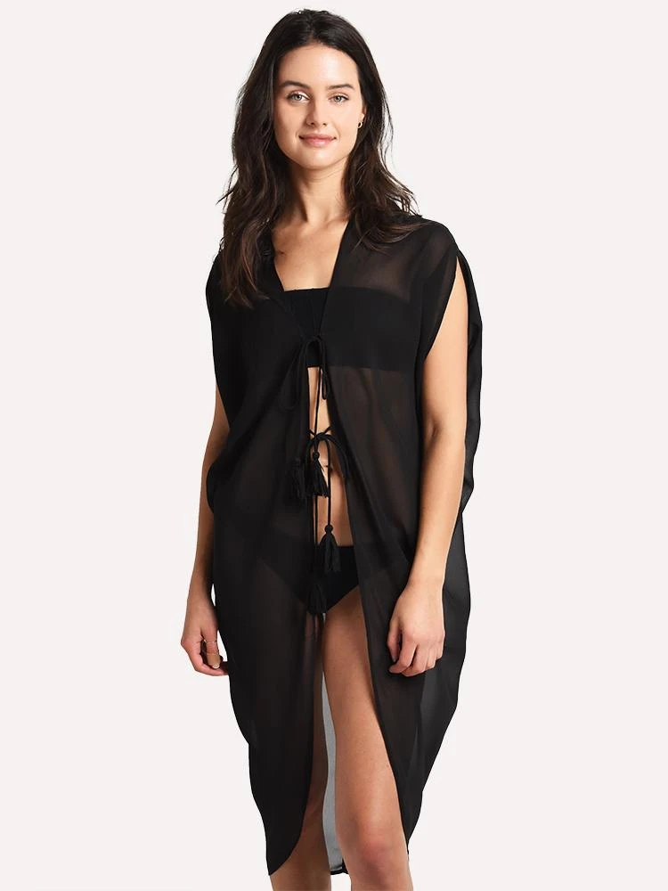 The Echo Solid Open Front Breeze Caftan is ready for your next beach vacation.