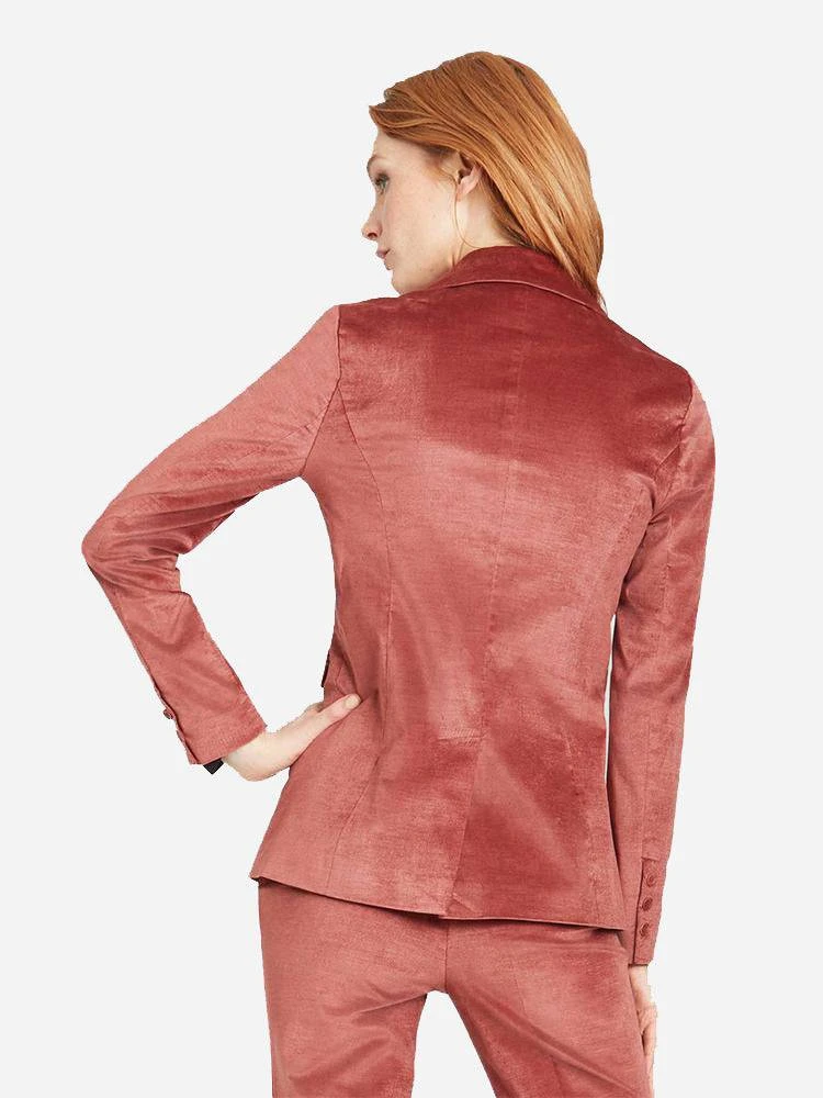 The luxurious Ecru Double Breasted Stretch Velvet Blazer is a season favorite to dress up or down.