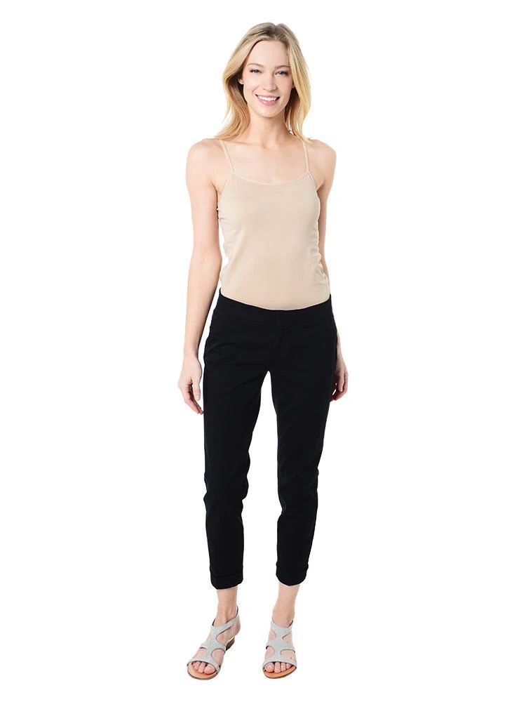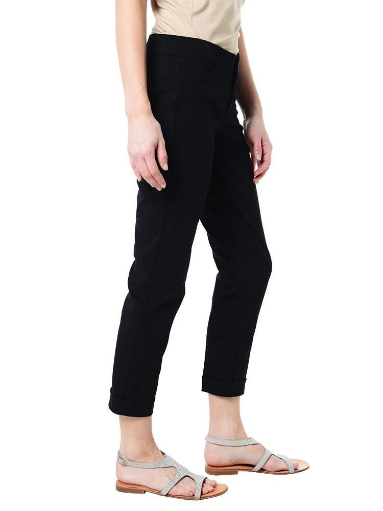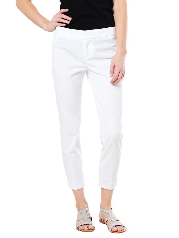 FEATURES:Cuffed hemHidden hook and button closure with zip flyBack welt pocketsSlighty lower riseInseam: 28 Leg opening: 12 56% Cotton, 37% Poly, 7% SpandexMachine wash coldModel is wearing size 2 pant.