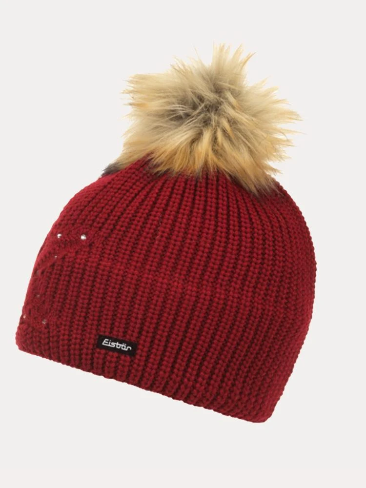 FEATURES:Knitted Micro fleece headband Fluffy pompom Eisbar branding Shell: 50% merino wool, 50% polyacrylic Fleece: 100% polyester Machine washableÂ