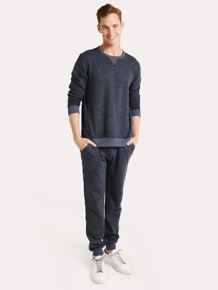 cotton Styled with Faherty Brand sweater style # MKF1814 and Koio sneakers style # CAGP. Model is wearing size