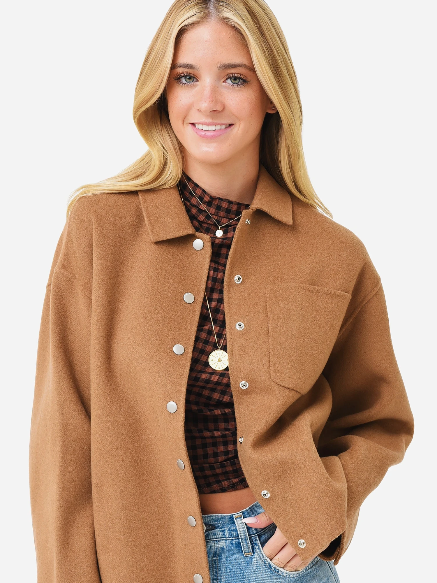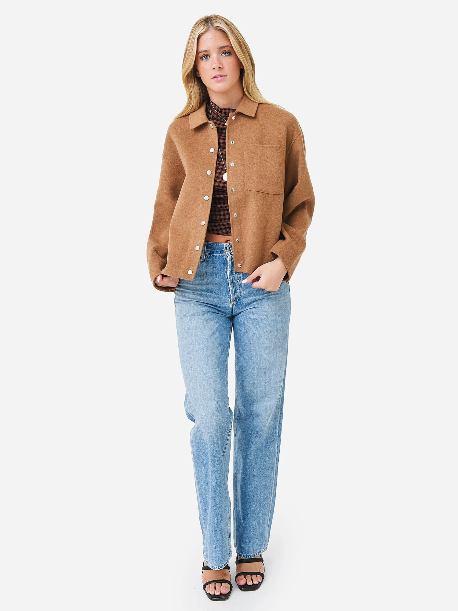 Button-down wool-blend shirt-style jacket.
