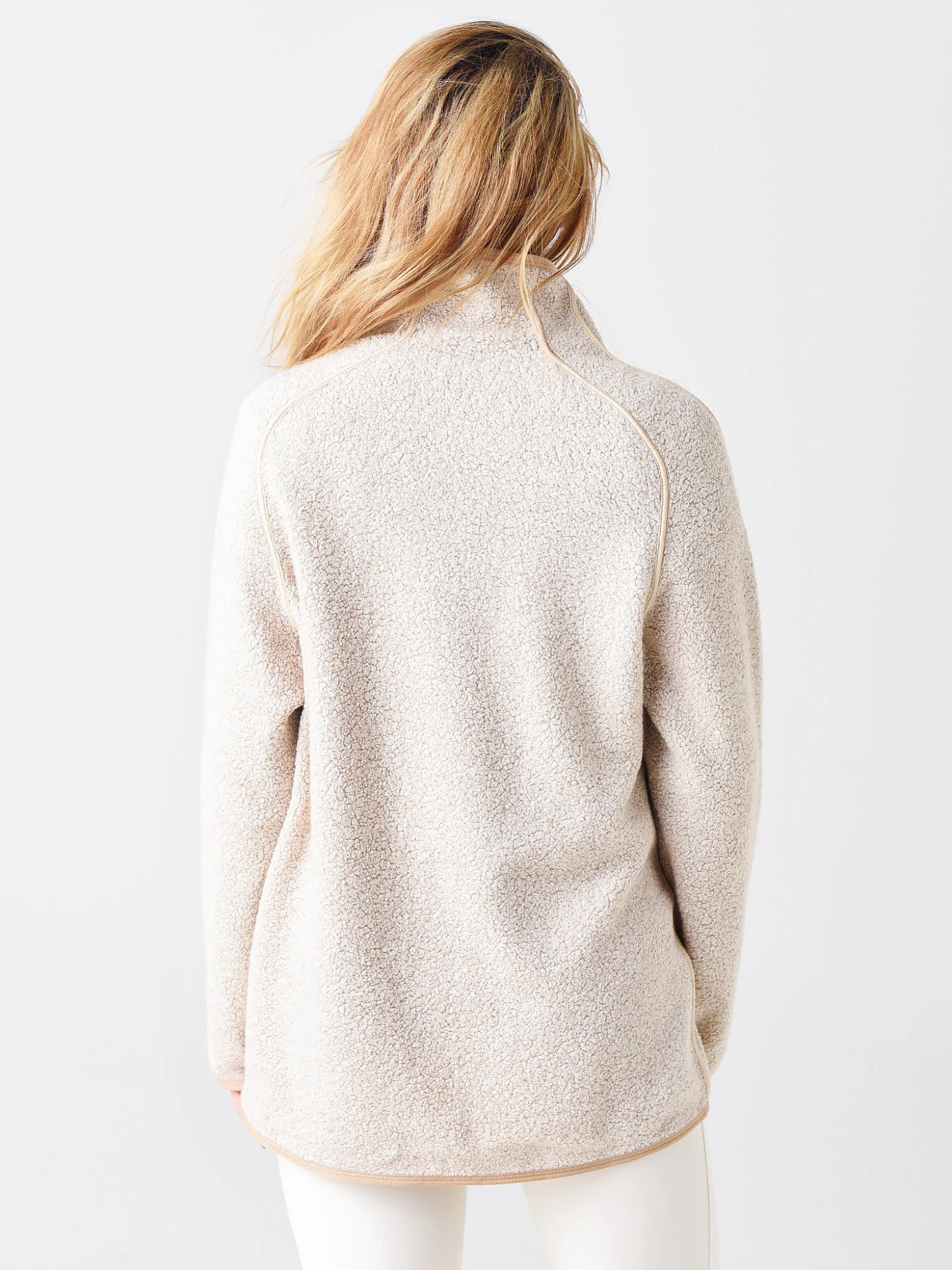FEATURES:Pullover SweaterAdjustable Loose Stand-Up Collar5-Button Snap DetailLong SleeveContrast Trim on Collar, Cuffs and HemLuxury Fleece Fabrication39% Modal, 17% Wool, 17% Polyamide, 14% Polyester, 13% CashmereRelaxed FitModel is wearing size 1 sweater.Model’s Measurements: Height: 5’10” | Bust: 32B | Waist: 26″ | Hips 36″ | Dress: 4 (US)