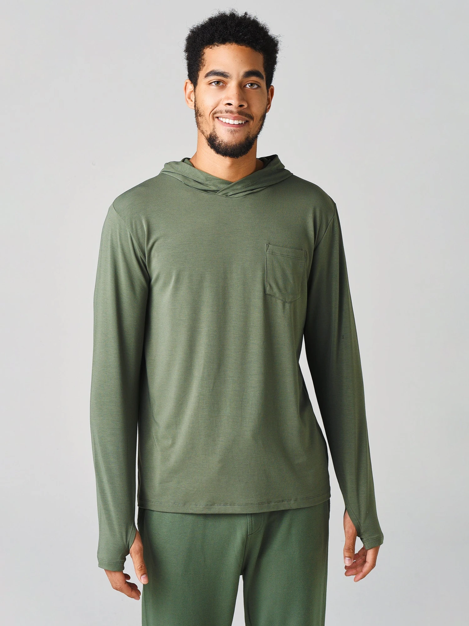 FEATURES:HoodieHigh NecklineCrossover Hood ConstructionBuilt-In ThumbholesLeft Chest PocketUPF 50+4-Way StretchBamboo FabricationLightweightRegular FitBamboo Move 270 TechnologySelf: 47.5% Viscose from Bamboo, 47.5% Polyester, 5% SpandexModel is wearing size Medium hoodie.Model’s Measurements: Height: 6’1″; Waist: 31″; Inseam: 32″; Collar: 16″; Sleeve: 34″