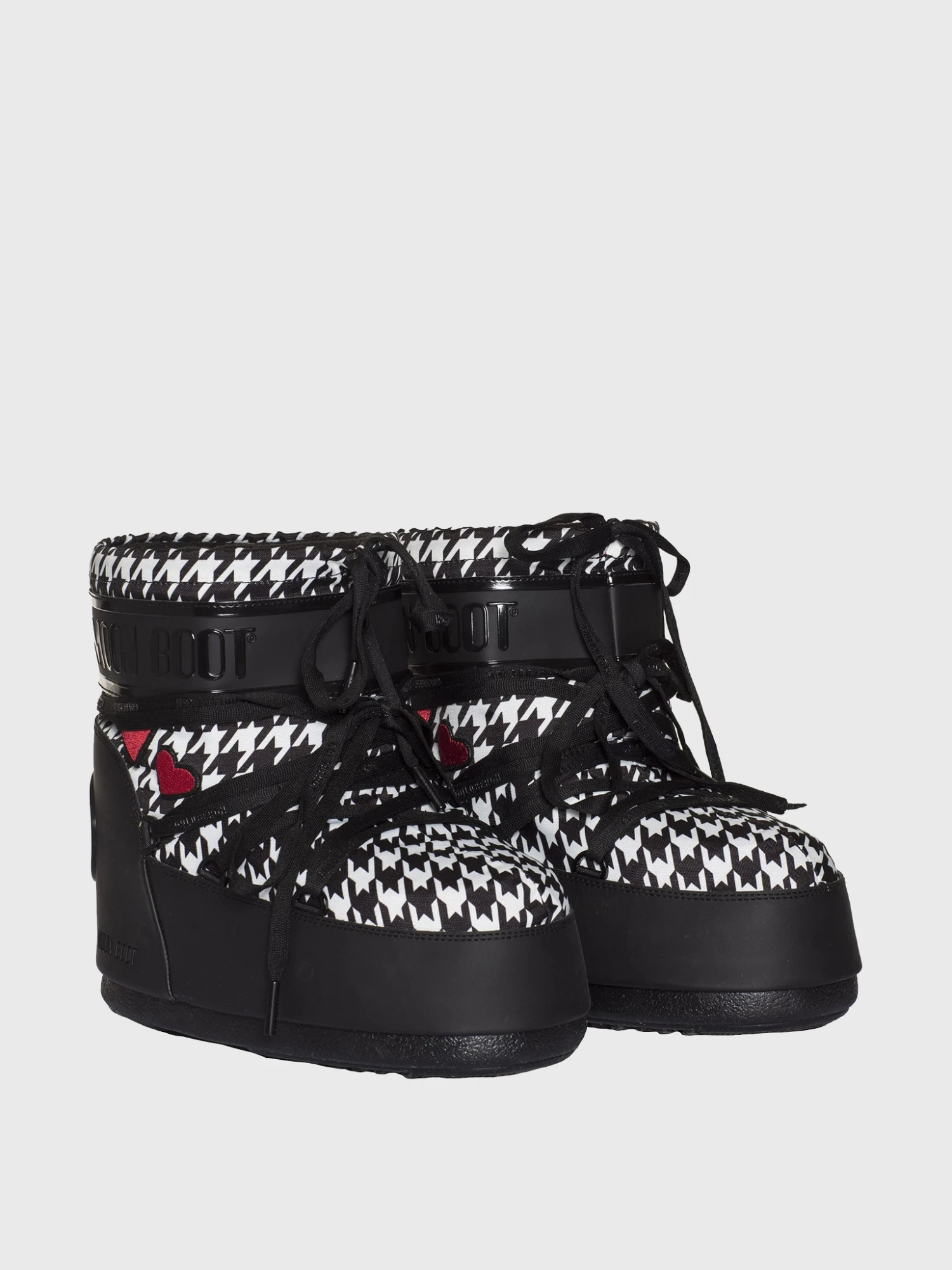 FEATURES:Après-Ski Bootie, Winter BootieRounded ToeLace-Up VampGoldbergh Logo Velcro BandSpecial Edition Anniversary Collaboration with Moonboot The OriginalAll-Over Houndstooth Print and Novelty Heart EmbroideryUppers: 60% Polyamide, 40% PVCLining: 100% PolyesterFill: 100% PolyesterSole: 100% Rubber