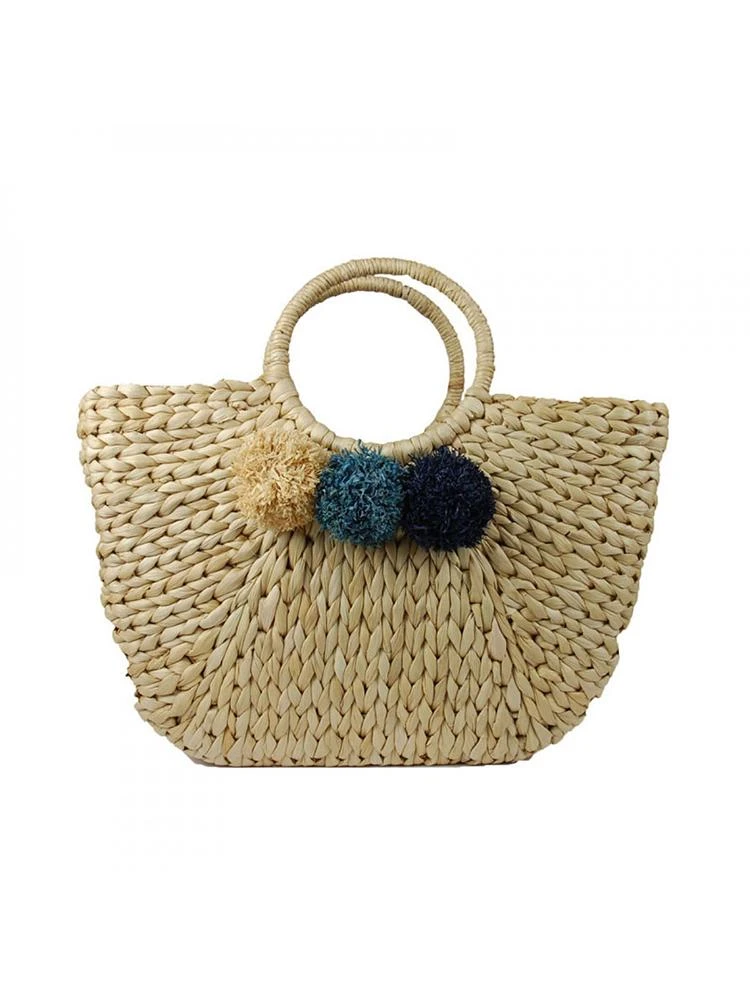 FEATURES:Braided totePom pom accents90% corn straw, 10% raffia
