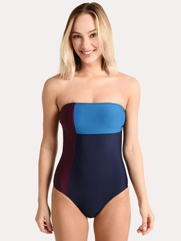 The flattering Helen Jon Colorblock Bandeau One Piece is a favorite for lounging by the pool.