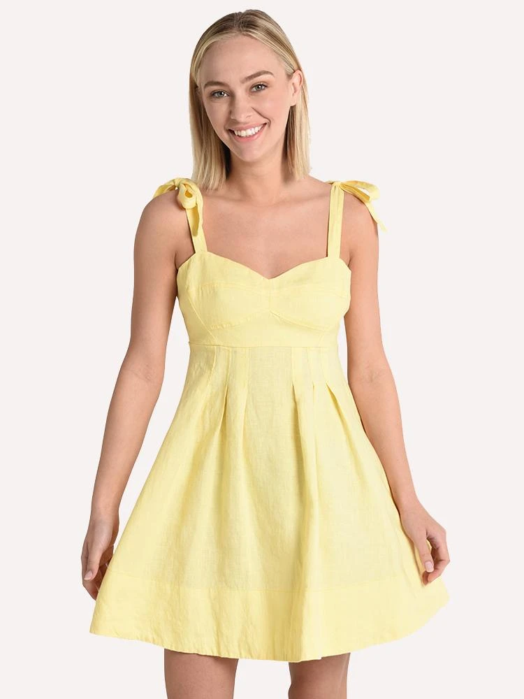 FEATURES:Linen DressDyed ColorationBustier Bodice 100% LinenStyled with Tretorn shoes Style # EVE. Model is wearing size Small dress.