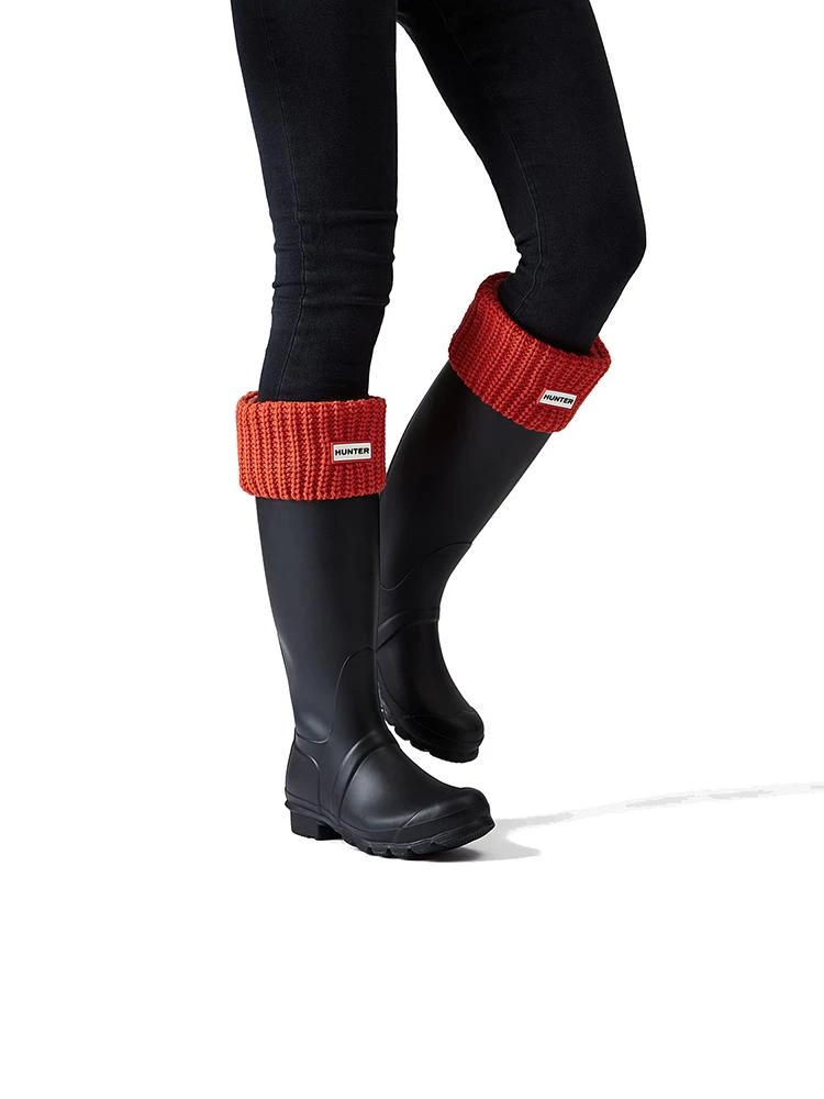 T hese boot socks are made from soft microfleece with a chunky half cardigan- stitch cuff. Designed to enhance fit, while giving added comfort and warmth, our socks can be worn folded over to personalize Hunter boots.