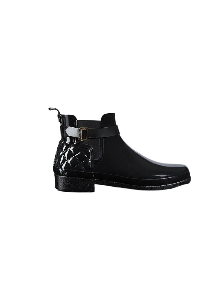 The Hunter Rain Boots Original Refined Quilted Gloss Chelsea Boot offers style during and after a storm.