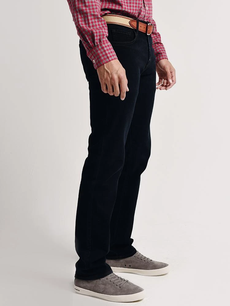The J Brand Kane Jeans gets a deep rinse and contrast stitching for a classic denim look. Whiskering and fading through the thighs. 5-pocket stylingÂ