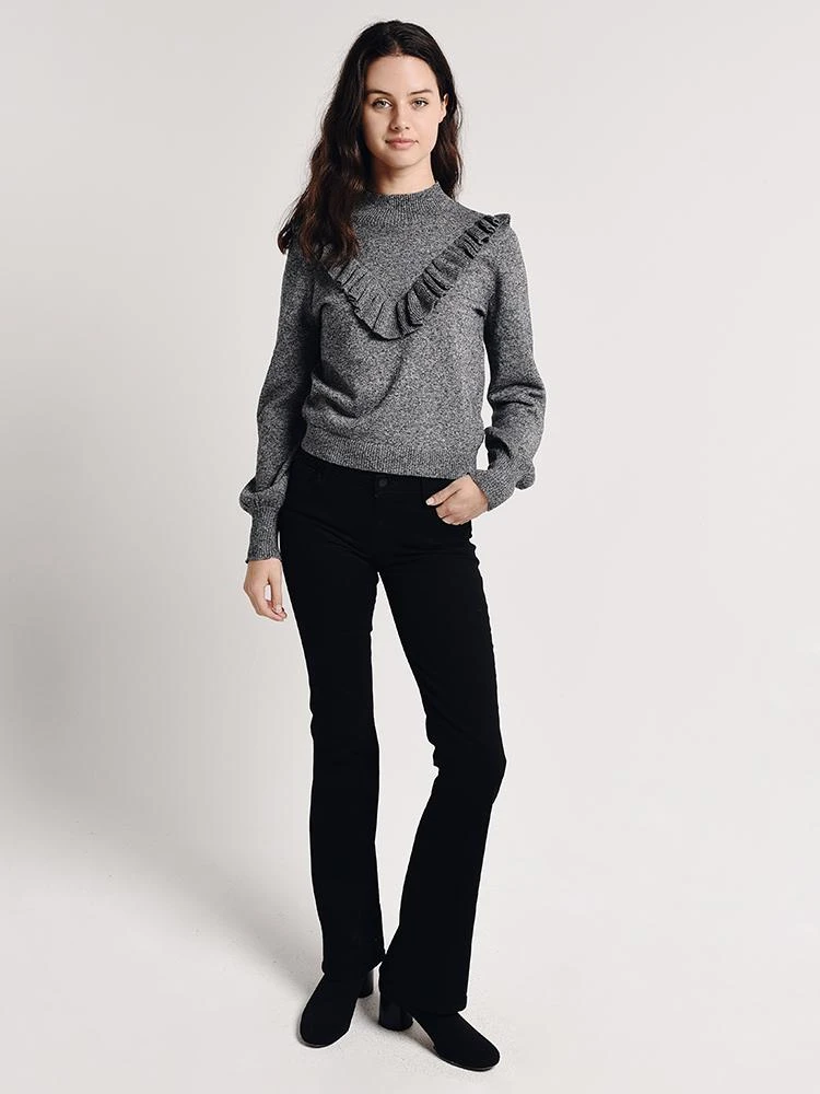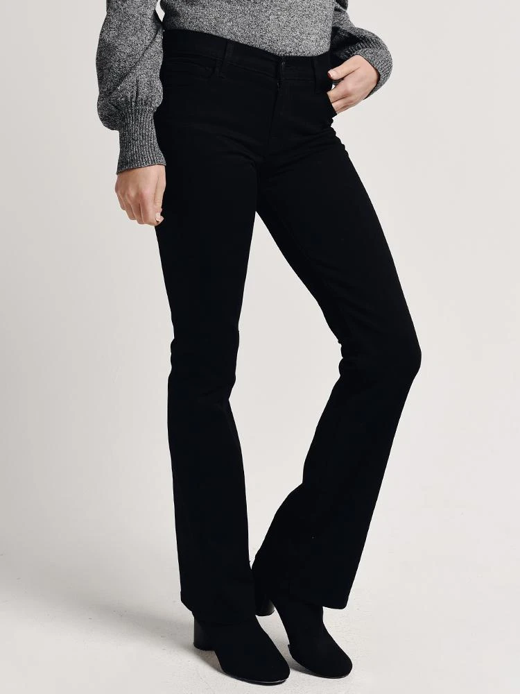 FEATURES:Approx. measurements: 8.75 rise; 32 inseam; 18.25 leg opening.Five-pocket style.Fitted through boot-cut legs.Full length.Button/zip fly; belt loops.Cotton/polyurethane.Model is wearing size 26 jean.