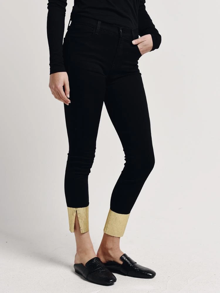 Had a touch of metallic to your denim collection this season with the J Brand Alana High Rise Crop Skinny Jean.