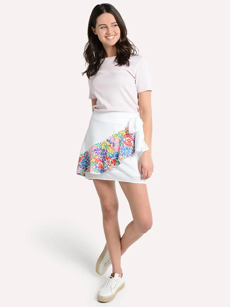 FEATURES:embroidered trim ruffle hemtie waist imported Styled with Hartloom top Style # 190AF1A. And Trenton Style # EVE. Model is wearing size small top and skirt.