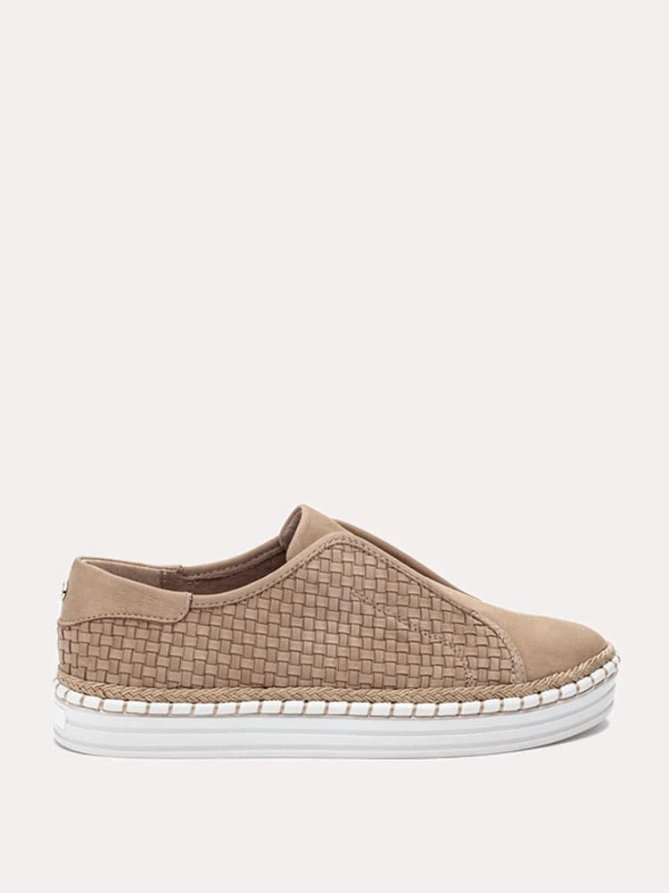 FEATURES:Woven nubuck leather imported from ItalyLeather liningRemovable gel insoleRubber soleK-Construction with 1 tiered rubber platformImported