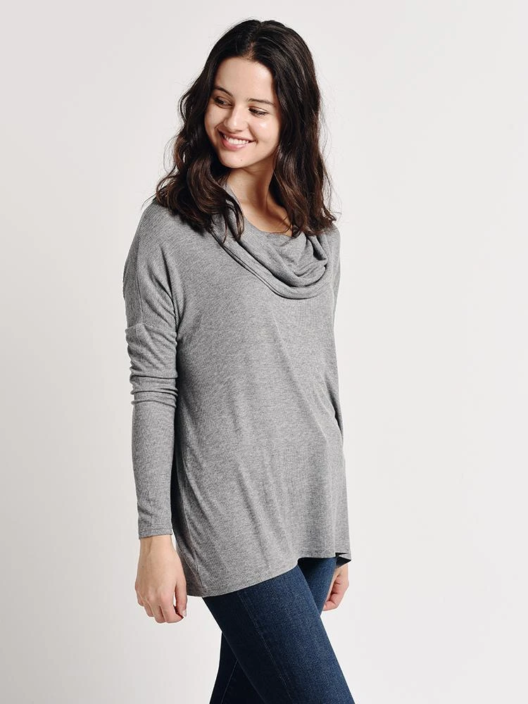 FEATURES:Long-sleeve pullover in a stretch rayon rib knit.Easy fit.Cowl neckline.Seamed back.Dropped shoulder seams.Dropped shoulder seams.97% rayon, 3% spandex.Hand wash and dry flat.Imported.Styled with Citizens of Humanity Jeans Style # 1416C-989, BB and Philippe Model Style # CLLD-XY04. Model is wearing small vest, sweater and 26 jean.