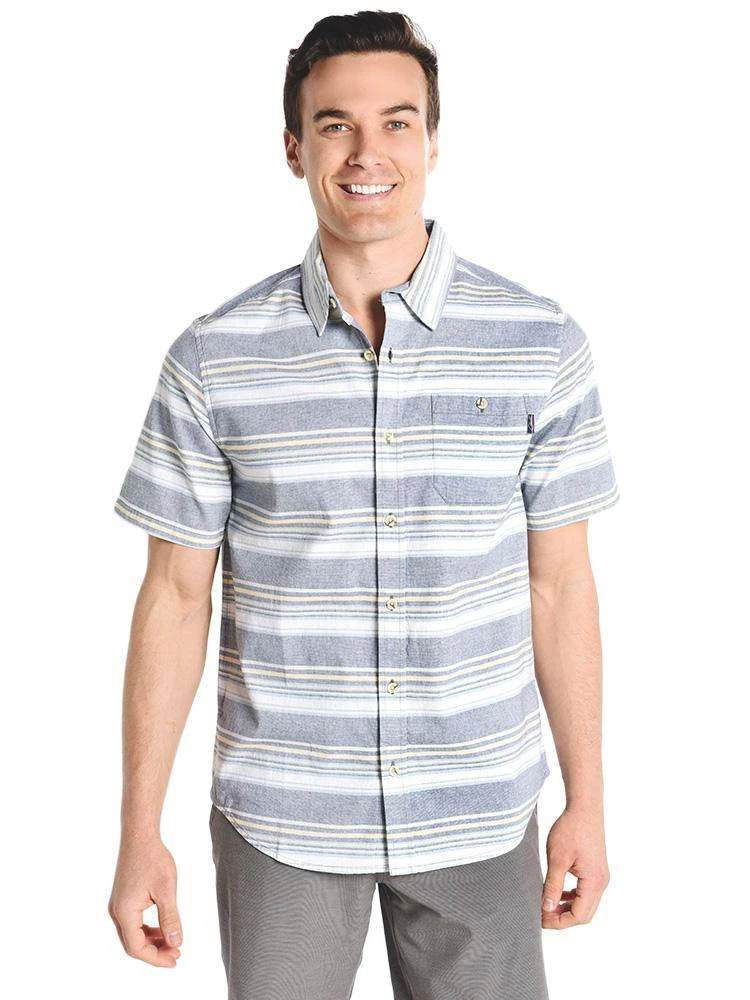 FEATURES:31 length; 44 chest (size Medium)Raised placketPoint collarShort sleevesChest button-patch pocketBack yoke with shoulder pleatsCurved hem100% cottonMachine wash, tumble dryStyled with Reef Sandals Style # RF0A2YFU. Model is wearing size medium shirt.
