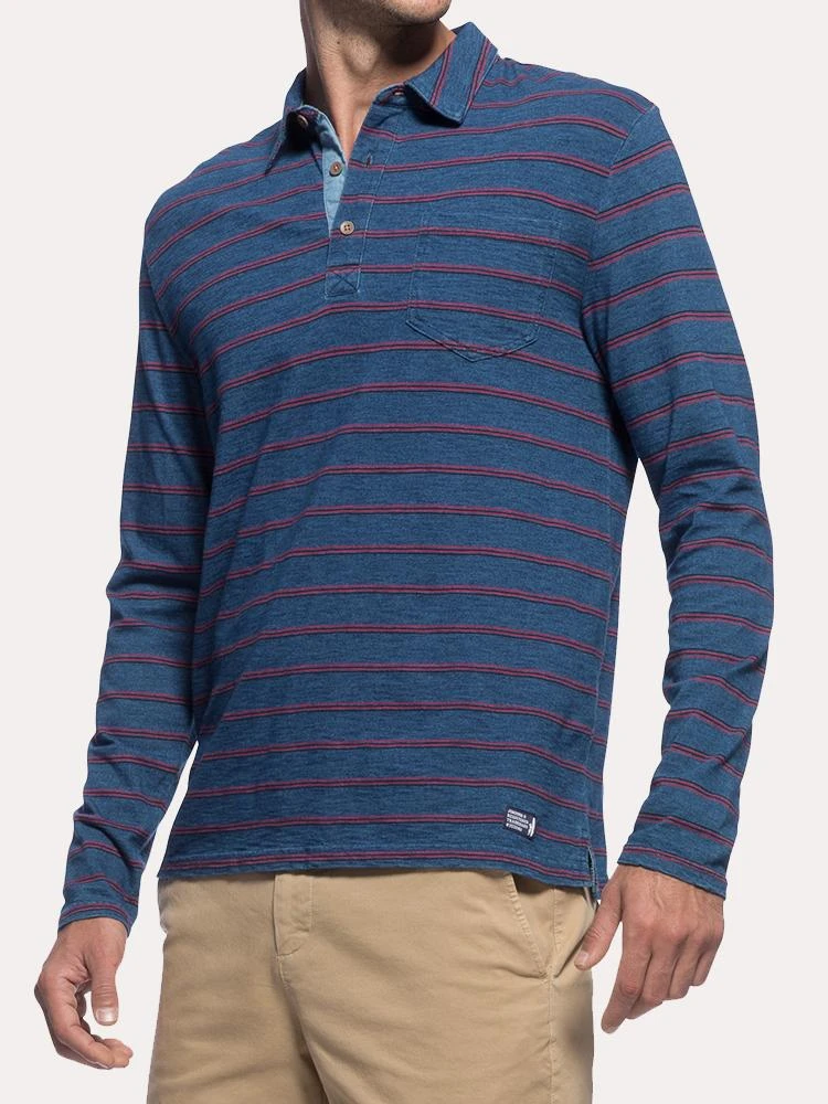 FEATURES:100% Slub Indigo Cotton JerseyJohnny collar long sleeve poloChest pocketChambray trim inside neck and placketPatched label bottom leftImported