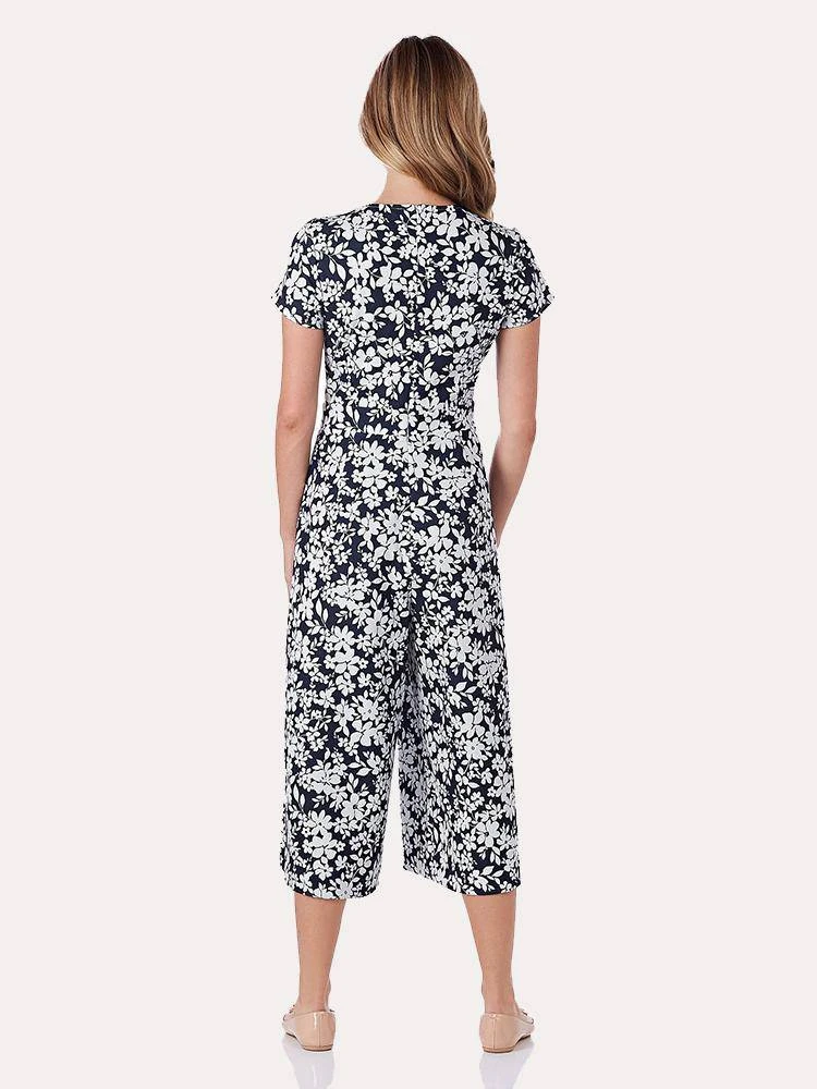 FEATURES:Short sleeve.Wide-leg cropped jumpsuit.Hidden back zipper.20in. inseam (Size S).Model is 5’9 wearing a S.Poly/Spandex.Machine wash cold.