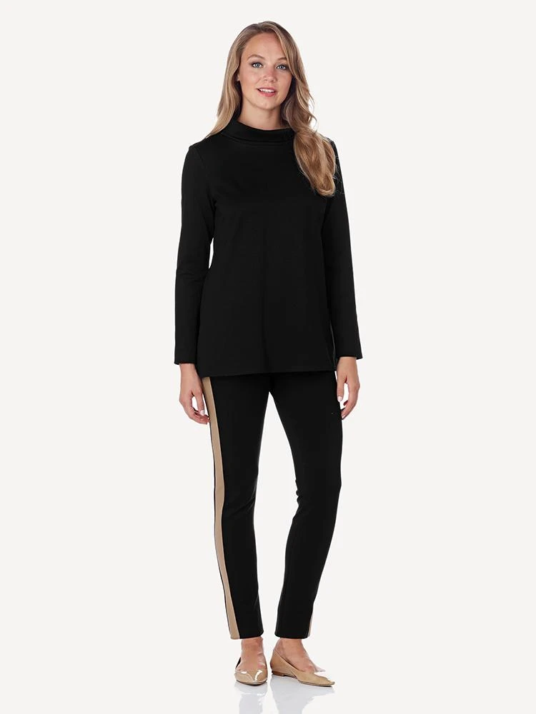 FEATURES:Elastic waistband Pull-on style Stripe down leg Cigarette style leg Inseam 32 in Rayon/Nylon/SpandexHand wash or dry clean