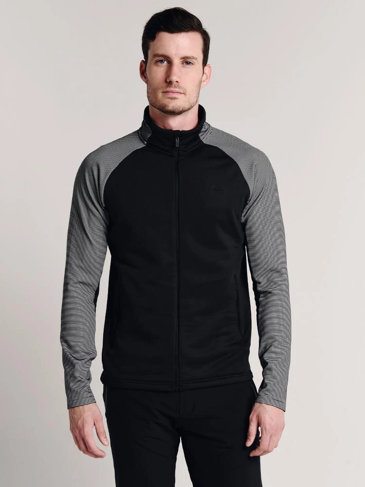 The KJUS Downforce Midlayer Jacket features high stretch ribbed fabric at the arms for unrestricted movement.