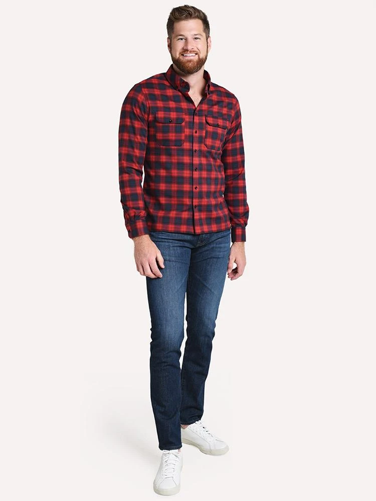 FEATURES:Button Down ShirtMidlayer FunctionalityButton Down Placket2 Button-Through Patch Chest PocketsSet-In SleevesSleeve Hem with Buttons2-Way StretchAnti-BacterialFinish: HeiQ Fresh Tech Antibacterial FinishFace Fabric: 95% Polyester, 5% ElastaneStyled with Adriano Goldschmeid jean Style # 1783FXD and Veja sneaker style # EA2001M. Model is wearng size 50 shirt and size 32 jean.
