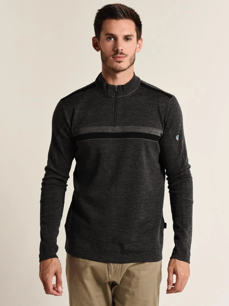 T he 100% Merino wool washable Kuhl Downhill Racr 1/4 Zip will keep you warm on your hike or racing downhill.