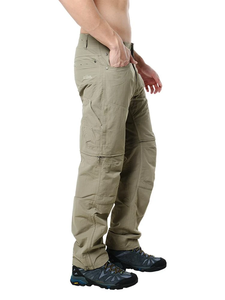 FEATURES:Full Fit features a loose, relaxed fit and straight cut through the leg.Convertible pants zips off above the knee to convert to a cargo short.DRYPOINT fabric: Moisture-wicking performance pulls perspiration away from the skin to disperse across the surface. DWR (durable water repellent) finish offers water resistant protection that improves quick-dry performance. UPF 40 fabrication protects your skin during outdoor activity by blocking harmful Ultraviolet A and Ultraviolet B rays (UVA and UVB).RHINO TECHNOLOGY design: Durable, non-stretch shell offers abrasion-resistant protection. High-stretch inner face and panels increase range of motion. Articulated knees with pleated panels improve mobility.Belt-loop waistband.Zip fly and snap-button closure.Scoop hand pockets with coin pocket at right.Back patch pockets.Vertical zip cargo pockets.Stealth welt cell-phone pocket at the left leg.Drop-in multitool pocket at the right leg.Snap-tab cuffs for easy leg removal.77% nylon, 23% cotton.Outseam: 40 inStyled with Merrell Shoe Style # J3213. Model is wearing size 32 Pants.