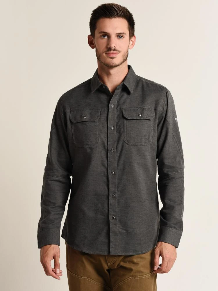 FEATURES:Fabric: 50% Cotton 10% Linen 40% Wicking Poly | 4.8 oz/sq. yd; 163 GSMMulti-tonal twillKĂźhl s exclusive articulated 5 -panel sleeves (PATENT PENDING) for better range of motion2 chest pocketsInside security pocket2-button adjustable cuffKĂźhl military style custom cateye metal buttonsStyled with Kuhl Slax Pant style # 5090# and Sorel Ankeny Mid Hiker style # NM2100. Model is wearing size Medium shirt and size 32 pants.