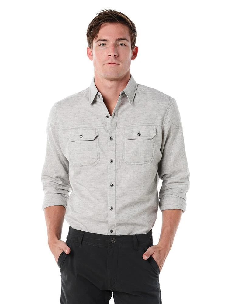 T he KĂHL Shiftr features KĂHL s exclusive articulated 5-panel sleeves for better range of motion. With two chest pockets, and inside security pocket and two-button adjustable cuff. The button down shirt uses bar button closure with grosgrain details. The fabric is a unique combination (50/10/40 Cotton/Linen/Nylon) and will quick-dry after a long hike. Cotton and Linen are renowned for comfort and breathability, and adding wicking nylon will help Shiftr to dry quickly by pulling moisture to the outside of the garment, away from the skin, and into the air for rapid evaporation.